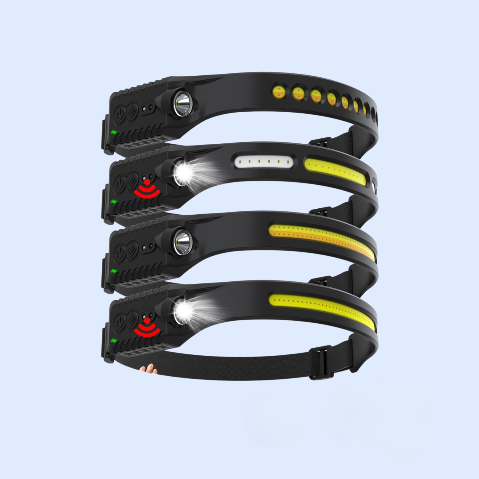 USB 충전식 아웃도어 라이딩 헤드램프, 스윙 감지 기능, 나이트 러닝에 적합, 휴대 간편, 밝은 LED 조명 제공